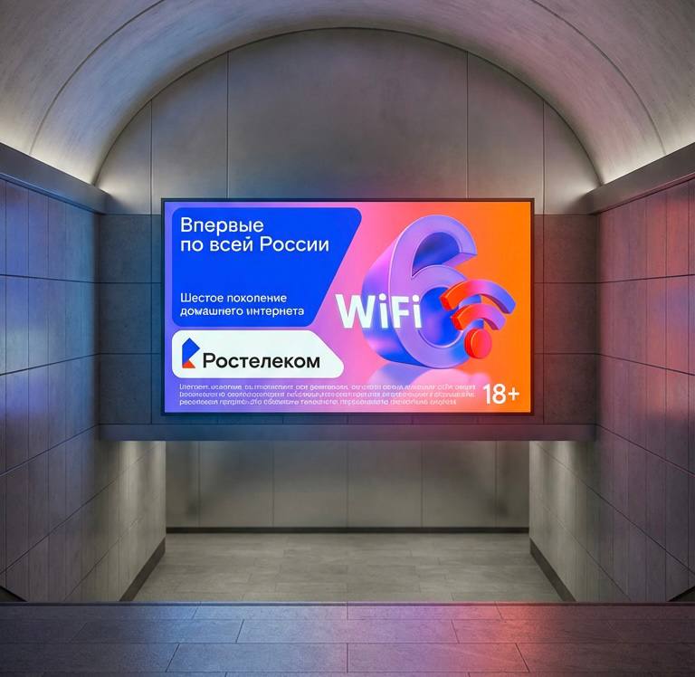 Два синхронных LED-экрана размещены в подземном пешеходном переходе у станции метро «Речной вокзал» — крупном транспортном узле Новосибирска.